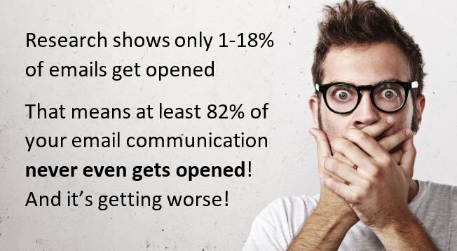 That means at least 82% of your email communication never even gets opened! And it’s getting worse!